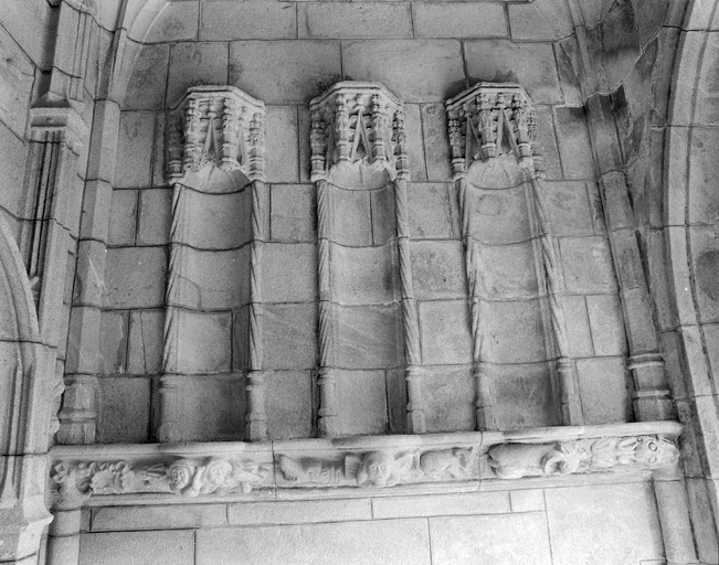 Porche sud, mur intérieur est, détail de trois niches et leur soubassement mouluré. (1979)Immatriculation