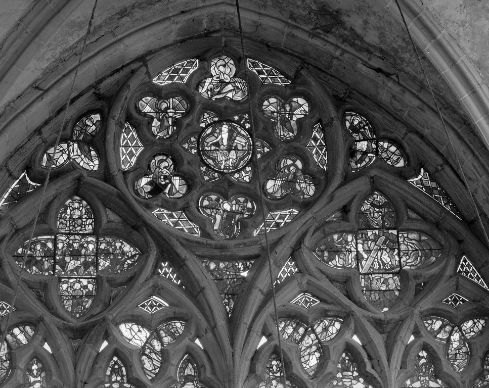 Verrière de la baie 100 (verrière légendaire) : Jugement dernier, Vie du Christ, Histoire d'Abraham, Vie de sainte Catherine, Vie de sainte Marguerite, évocation des évêques de Dol,
