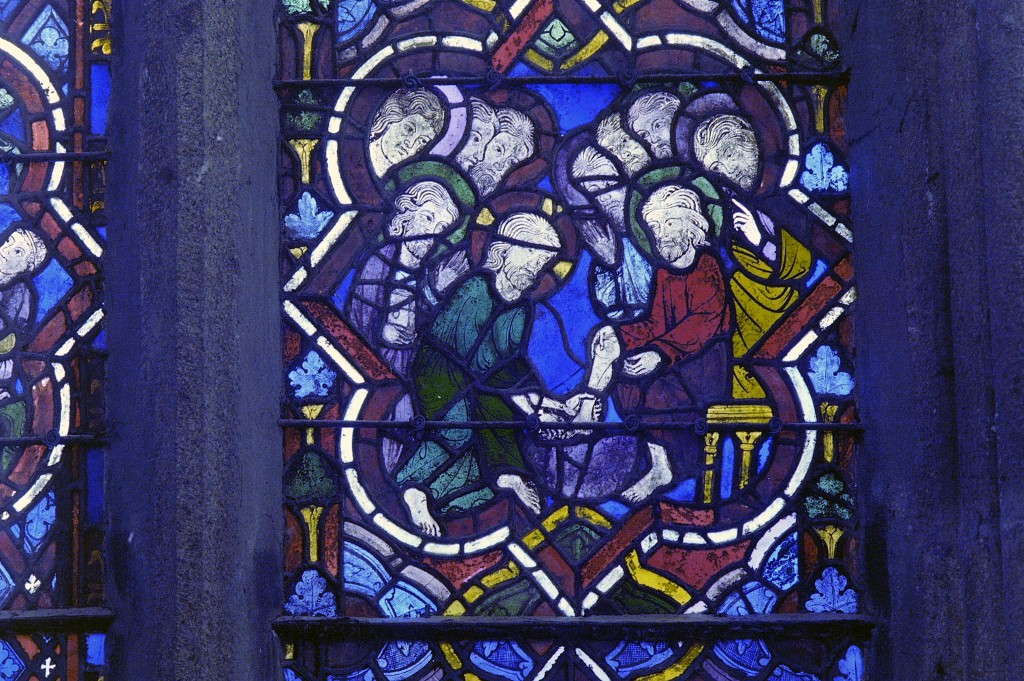 Détail du panneau d3. 4e lancette, 3e registre : Lavement des piedsImmatriculation