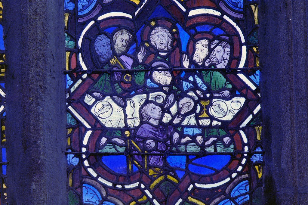 Verrière de la baie 100 (verrière légendaire) : Jugement dernier, Vie du Christ, Histoire d'Abraham, Vie de sainte Catherine, Vie de sainte Marguerite, évocation des évêques de Dol,