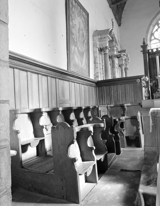 Ensemble de 2x13 stalles et 2 armoires, église Notre-Dame de la Tronchaye (Rochefort-en-Terre),