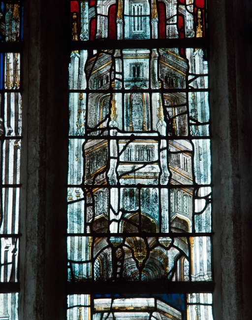 Verrière 0 - Maîtresse vitre - Panneau e4, détail d'un dais.Immatriculation