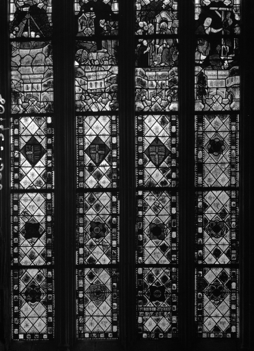 Maîtresse-vitre : Verrière à personnages : Vie de saint Jacques, Vie du Christ (baie 0),