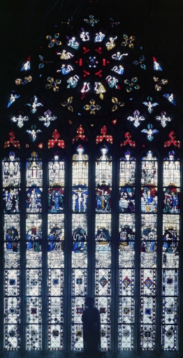 Maîtresse-vitre : Verrière à personnages : Vie de saint Jacques, Vie du Christ (baie 0),