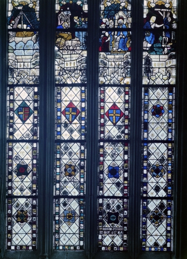 Maîtresse-vitre : Verrière à personnages : Vie de saint Jacques, Vie du Christ (baie 0),