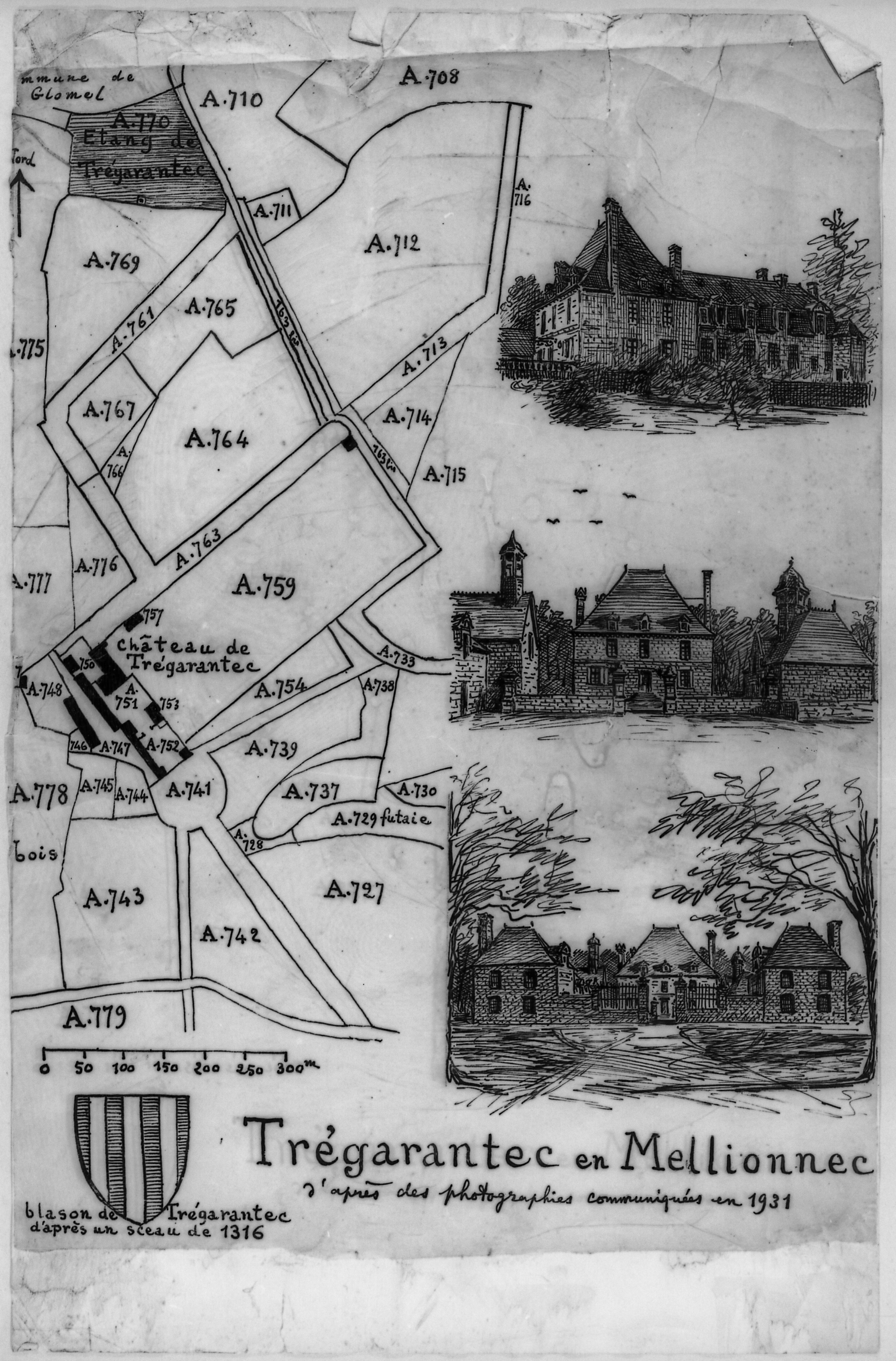 Trégarantec, dessin d'après photos en 1931, du vicomte H. Frotier de la Messelière (AD22)Immatriculation