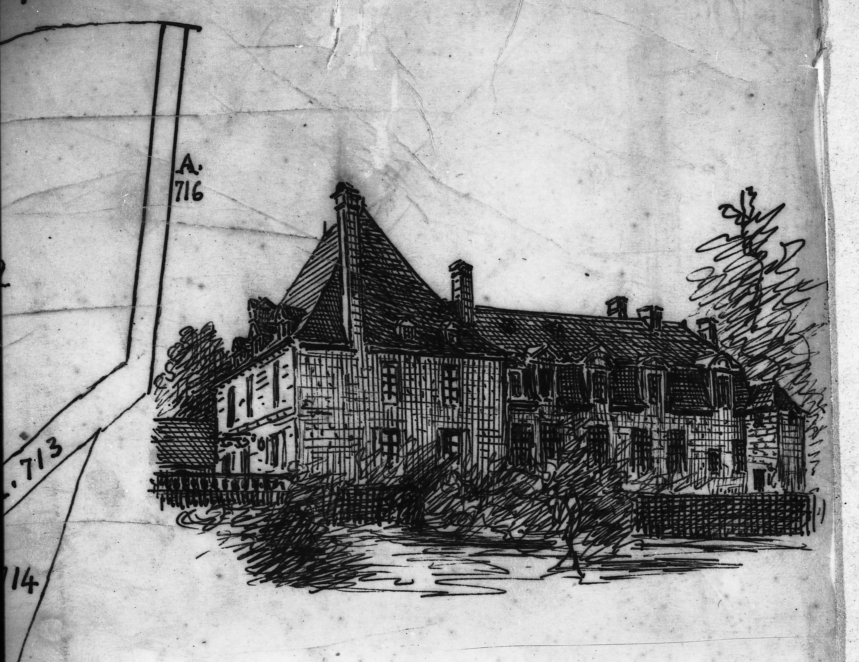Trégarantec en Mellionnec, dessin du vicomte Henri Frotier de la Messelière (AD22).Immatriculation
