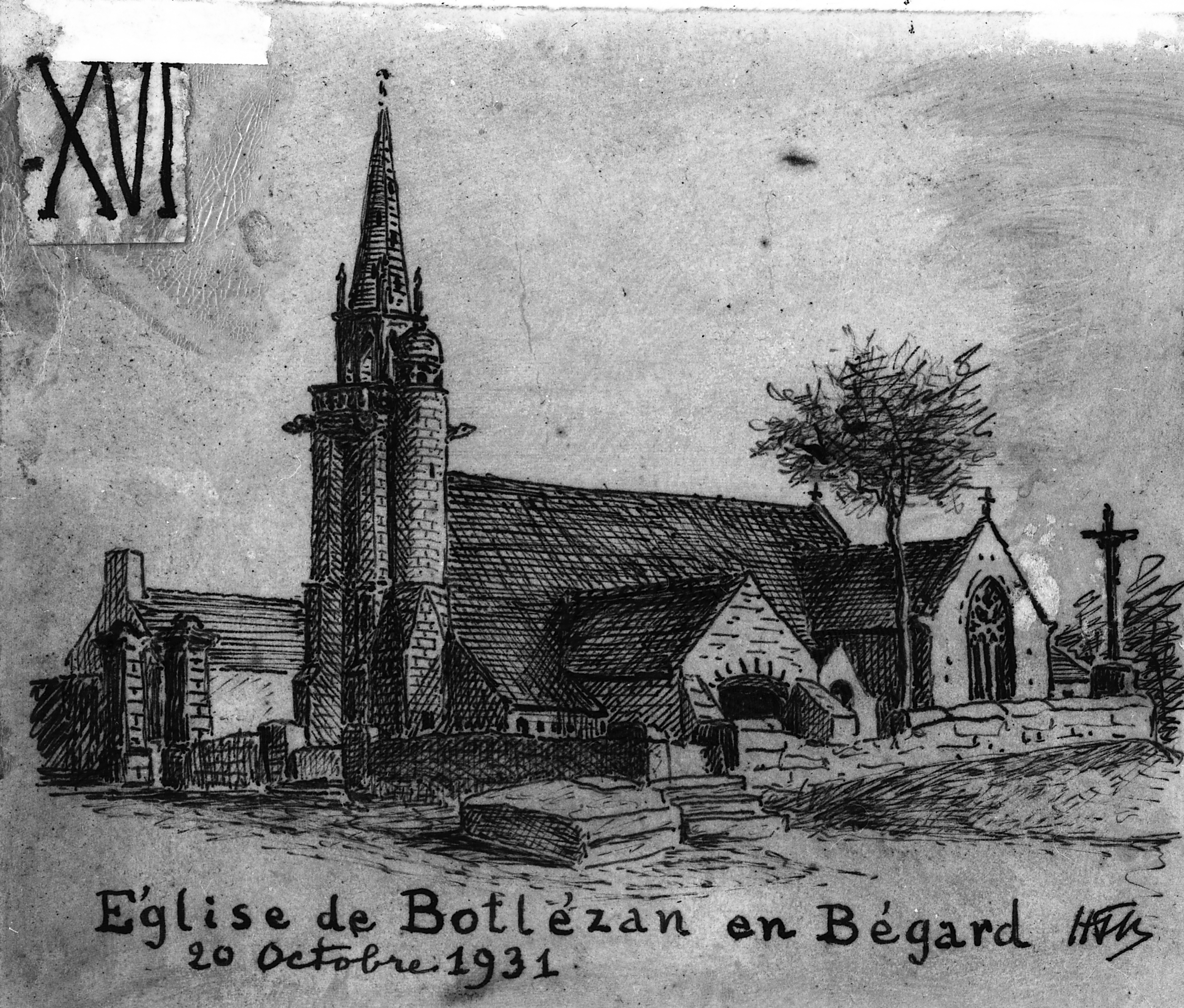 Croquis, église de Botlézan en Bégard, 20 octobre 1931.