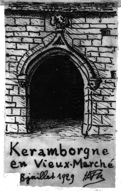 Le Vieux-Marché, Keramborn : croquis d'une porte [à Keramborgne] par Henri Frotier de La Messelière, 8 juillet 1929Immatriculation