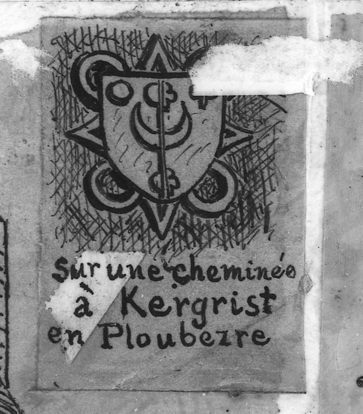 Ploubezre : château de Kergrist, armoiries figurant sur une cheminée, croquis par Henri Frotier de la Messelière, juillet 1903Immatriculation