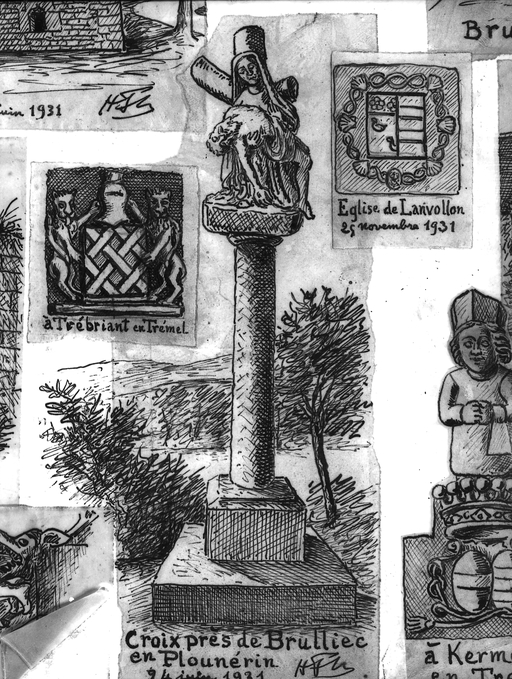 Plounérin, le Bot : croix de chemin, croquis par Henri Frotier de la Messelière, 24 juin 1931Immatriculation