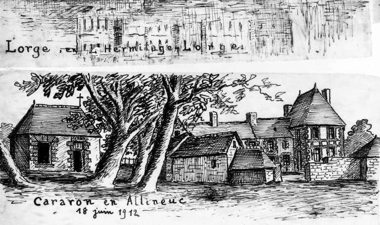 Vue générale sud avec la chapelle, dessin 1912Immatriculation