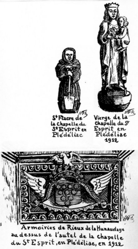 Repro. Dessin de Frotier de La Messelière, armoiries des Rieux et 2 statuesImmatriculation