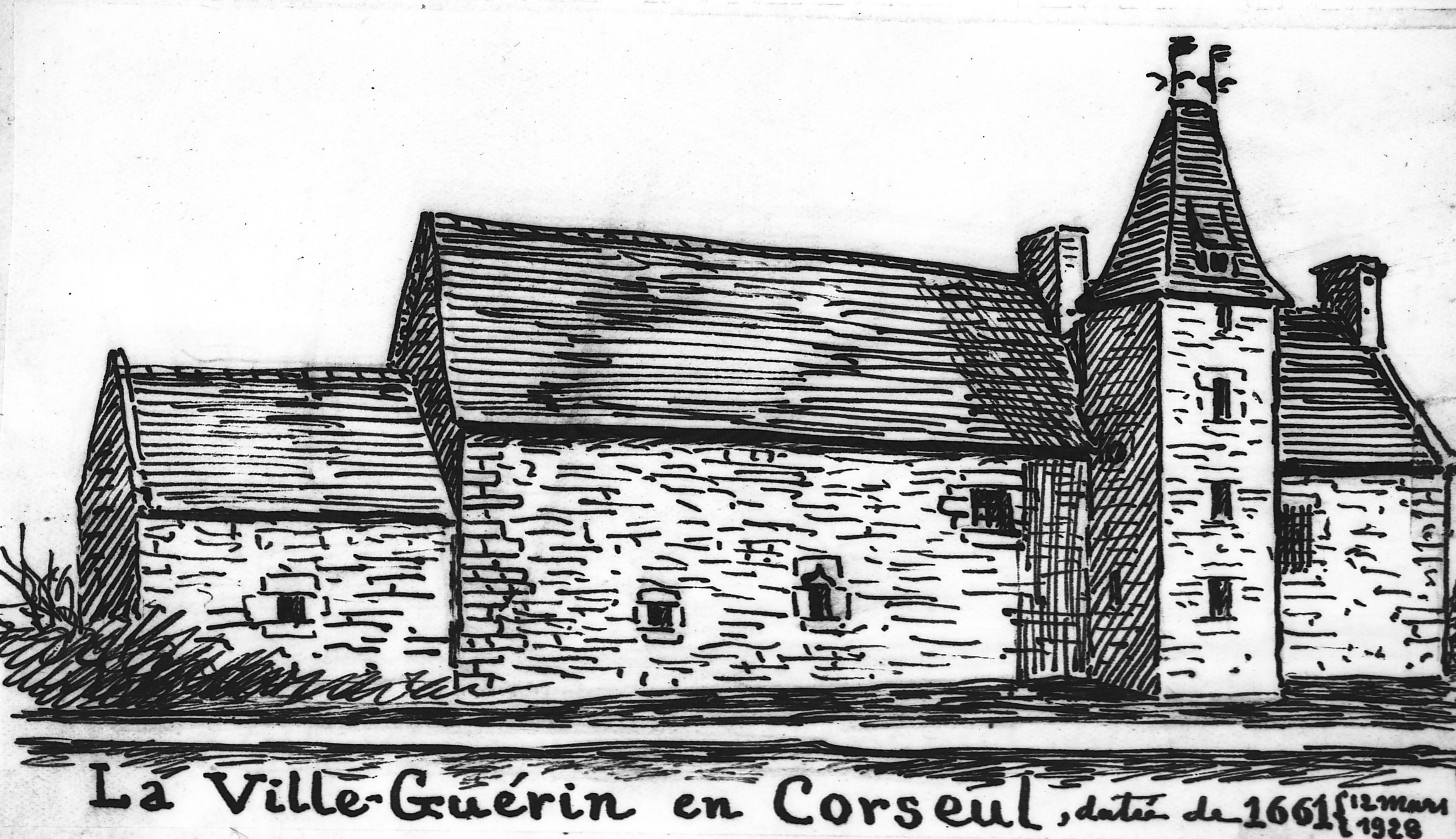 Croquis du manoir de La Ville-Guérin, réalisé par Frotier de la MesselièreImmatriculation
