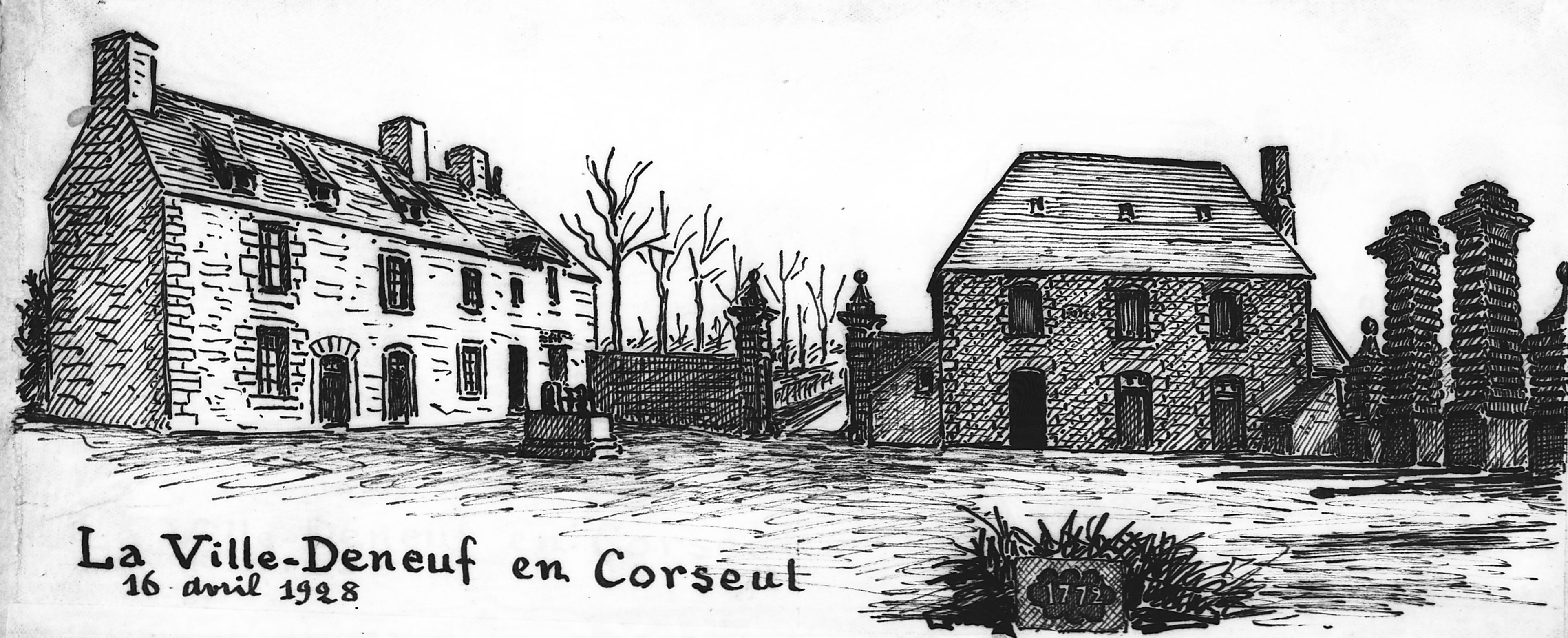 Croquis du manoir de la Ville Deneuf, d'après Frotier de La Messelière, réalisé en 1928Immatriculation