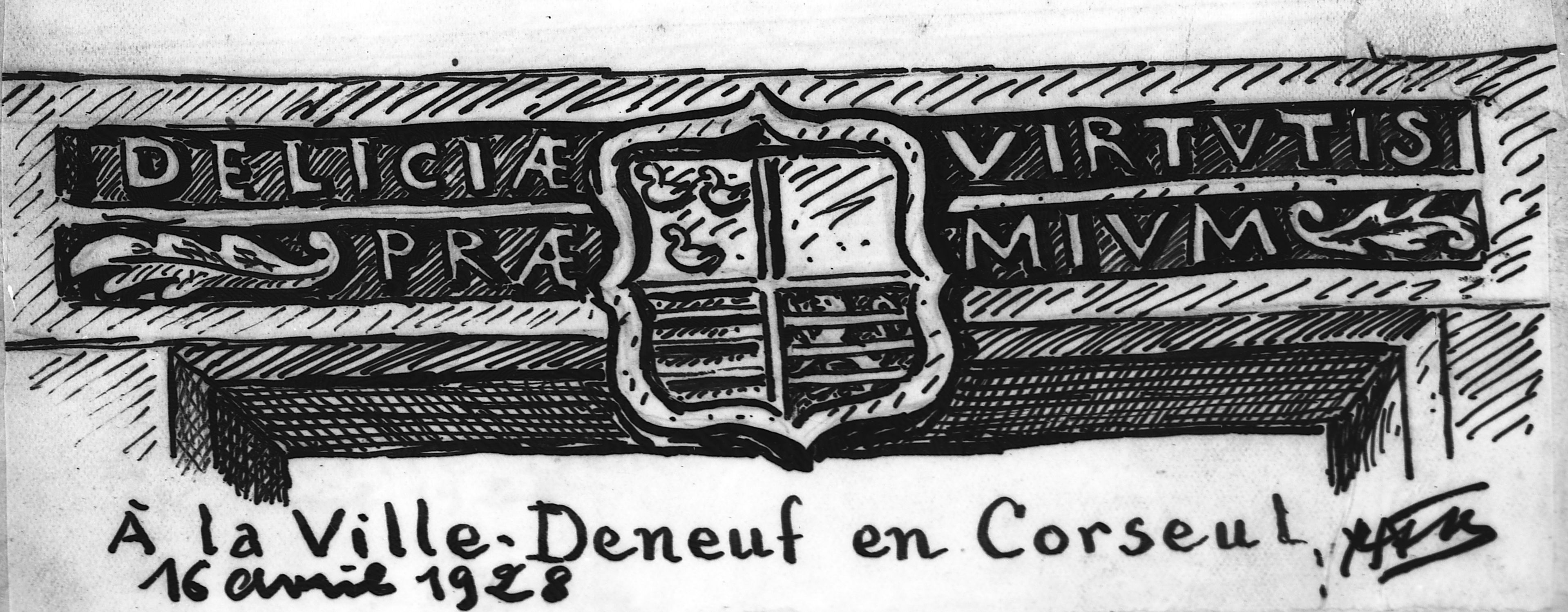 Croquis d'un linteau du manoir de la Ville DeneufImmatriculation