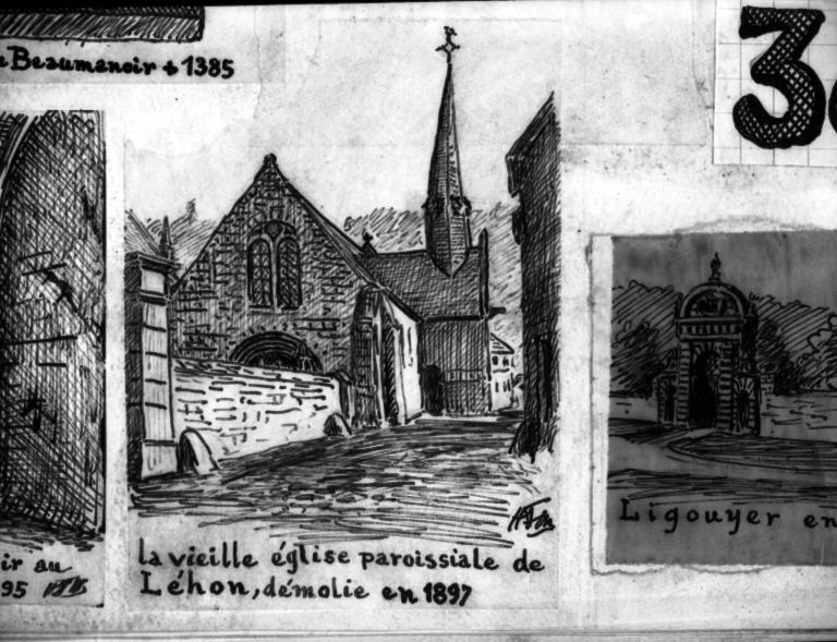 L'église paroissiale de Léhon, avant sa démolition en 1898, dessin de Frotier de la Messelière (A.D. des Côtes d'Armor)Immatriculation