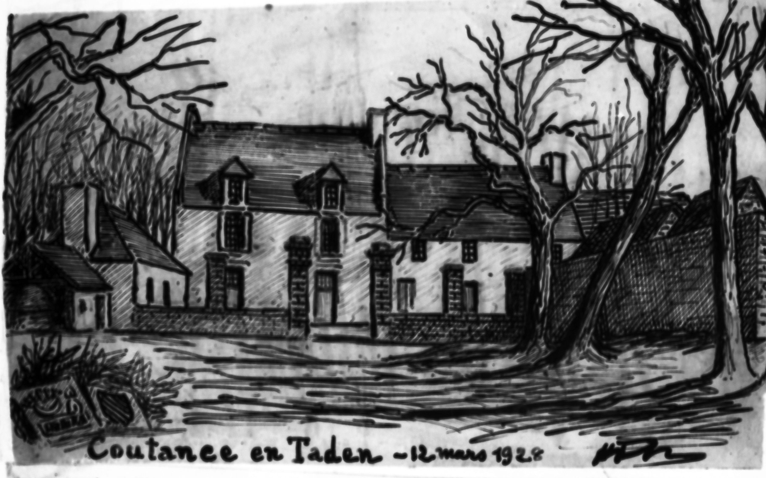 Coutance en Taden, 12 mars 1928, dessin par Henri frotier de la MesselièreImmatriculation