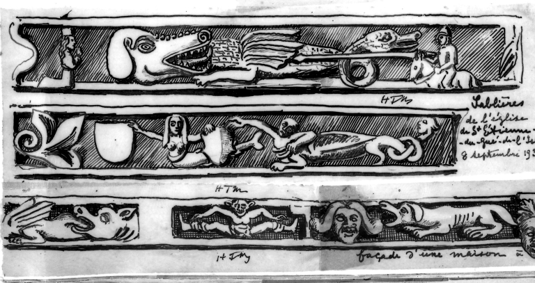Saint Georges terrassant le dragon, sirène, acrobate, chien. Dessin Frotier de la MesselièreImmatriculation
