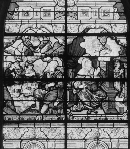 Maîtresse-vitre : Vie de la Vierge (baie 0) (La Ferrière fusionnée en Plémet en 2016),