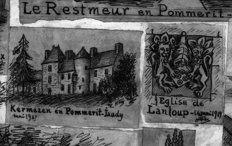 Le Château de Kermezen en 1947. Dessin d'Henri Frotier de La Messelière (A.D. 22, série Fi)Immatriculation