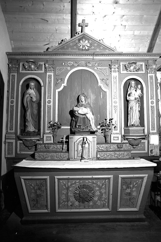 Autel, retable, tabernacle, gradins d'autel (2), (autel secondaire, autel tombeau, retable architecturé) : de la Vierge, église paroissiale Saint-Gorgon (Plovan),