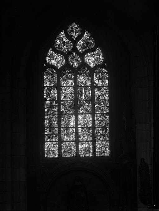 Verrière (2, verrière figurée géométrique, verrière typologique, baies 123), dite de la sainte famille, dite de la chapelle des trépassés,