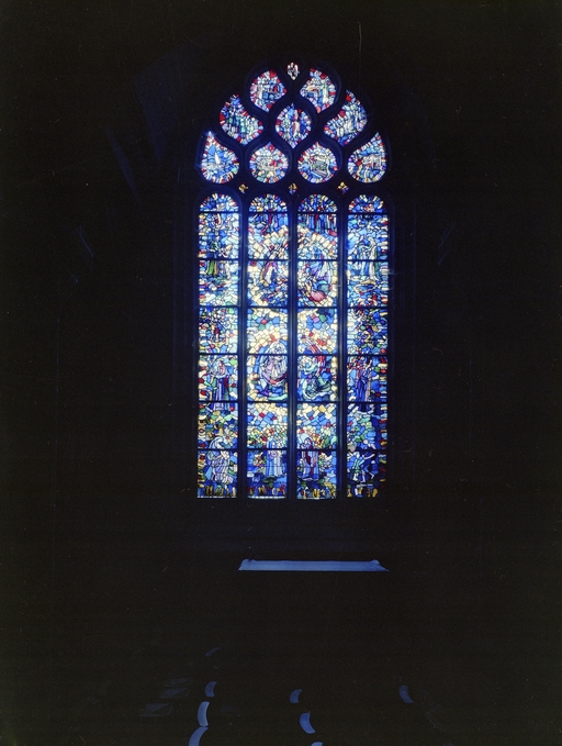 Verrière (2, verrière figurée géométrique, verrière typologique, baies 123), dite de la sainte famille, dite de la chapelle des trépassés,
