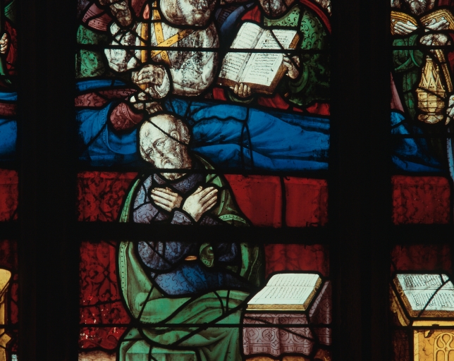 Verrière : Dormition et couronnement de la Vierge, chapelle du Notre-Dame-du-Crann (Spézet),