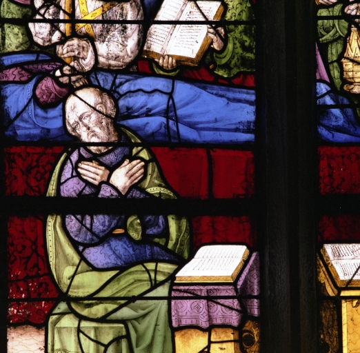 Verrière : Dormition et couronnement de la Vierge, chapelle du Notre-Dame-du-Crann (Spézet),