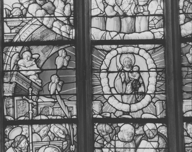 Verrière 4, dormition et couronnement de la Vierge, panneaux a, b, 3Immatriculation