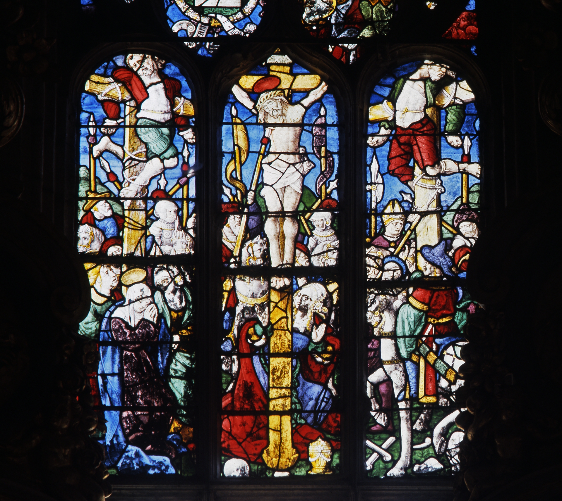 Verrière O, vitrail de la Crucifixion, vue d'ensemble (cliché manquant)Immatriculation