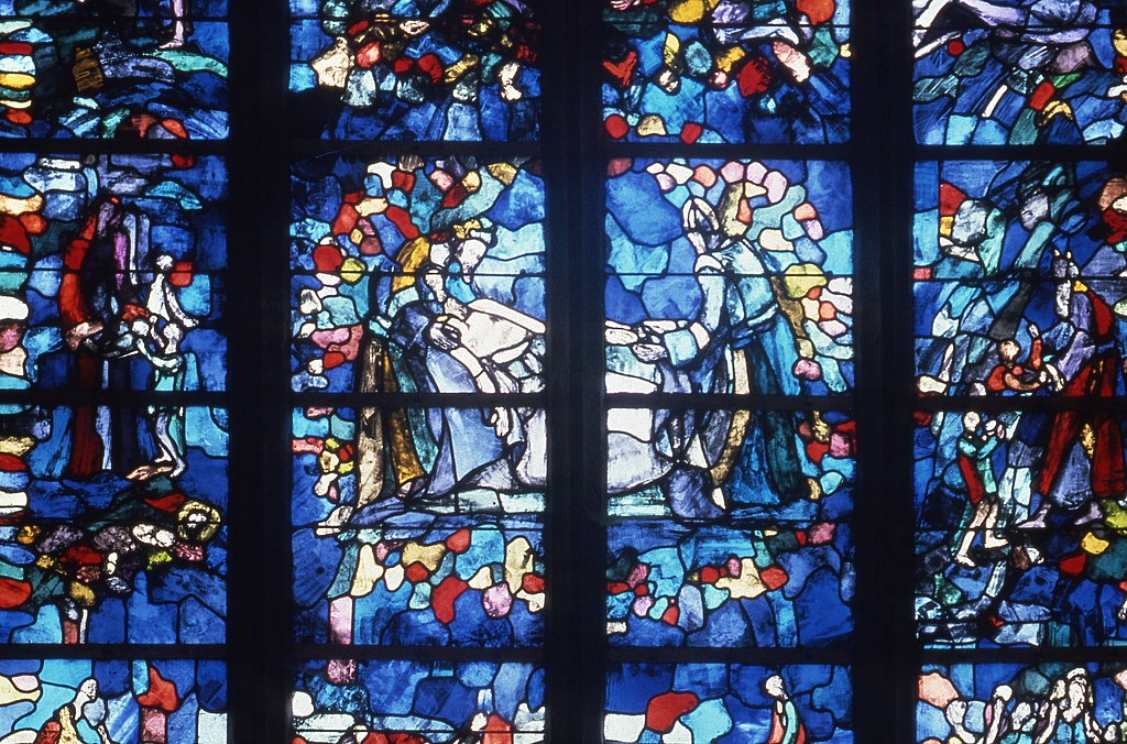 Verrière n°13 de la Mise au tombeau et de la Résurrection, détail.Immatriculation