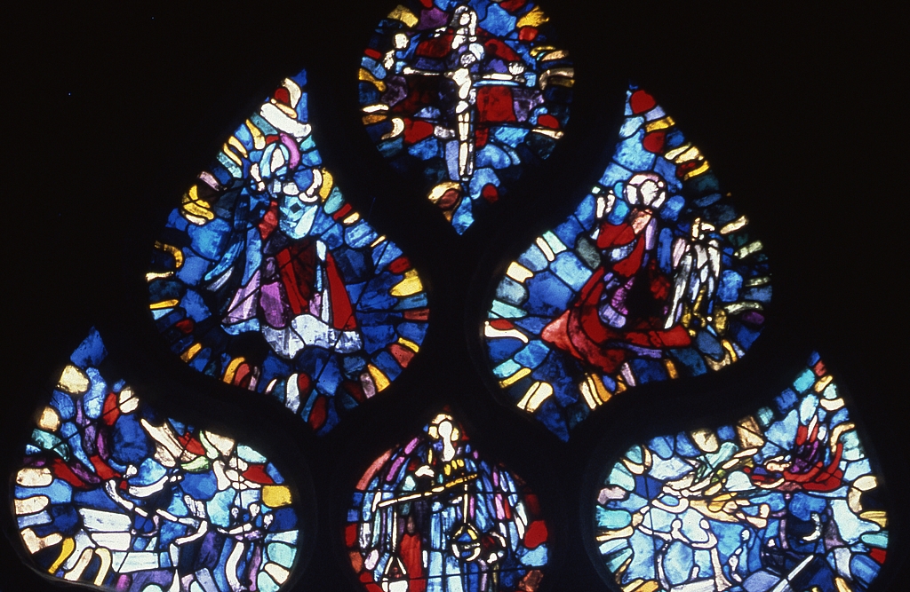 Verrière (2, verrière figurée géométrique, verrière typologique, baies 123), dite de la sainte famille, dite de la chapelle des trépassés,