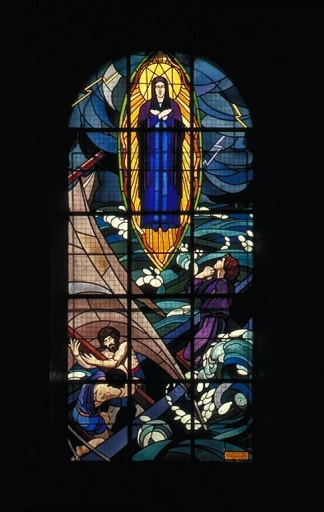 Verrière ex-voto de la baie 3 : La Vierge apparaît à des marins en difficulté,