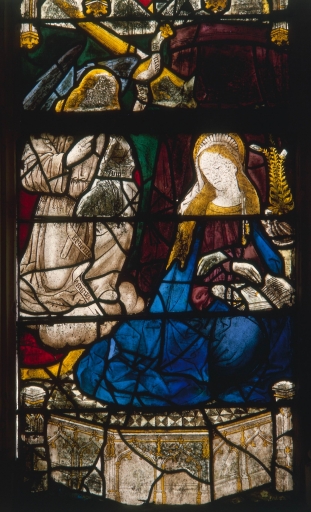 Verrière 1: Vie de la Vierge, panneaux b1 et b2, vue générale.Immatriculation