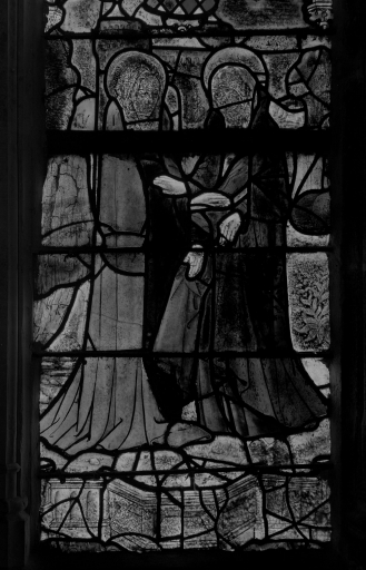 Verrière 1 : Vie de la Vierge, panneaux c1, c2, (Visitation), vue générale.Immatriculation