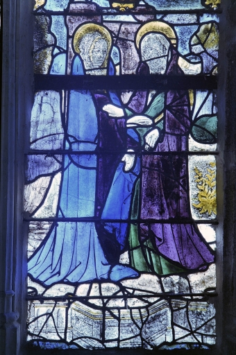 Verrière 1, vie de la Vierge, détail.Immatriculation