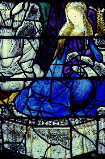 Verrière 1, vie de la Vierge, détail.Immatriculation