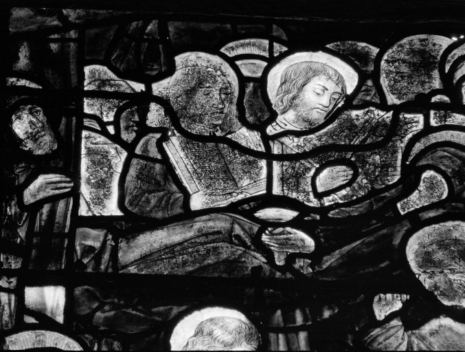 Verrière 1 : Vie de la Vierge, panneau a4, partie supérieure.Immatriculation