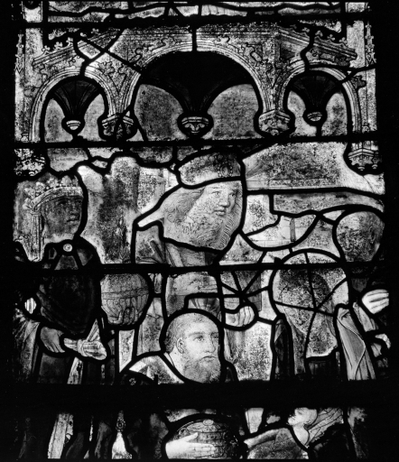 Verrière 1 : Vie de la Vierge, panneaux a3, vue générale.Immatriculation