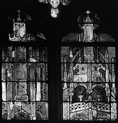 Verrière 1 : Vie de la Vierge, dais des panneaux b5, b6, c5 et c6.Immatriculation