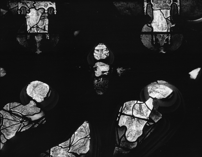 Verrière 1 : Vie de la Vierge, réseau et panneaux BII, CI et DII.Immatriculation