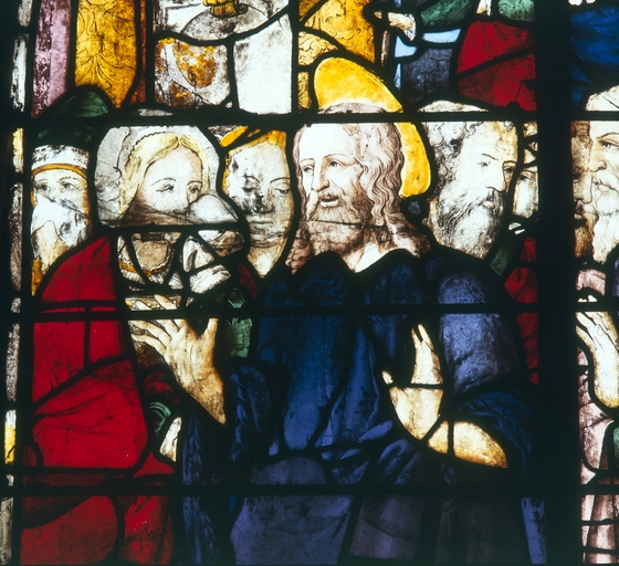 Mur nord, vitrail, la femme adultère : panneau A3.Immatriculation