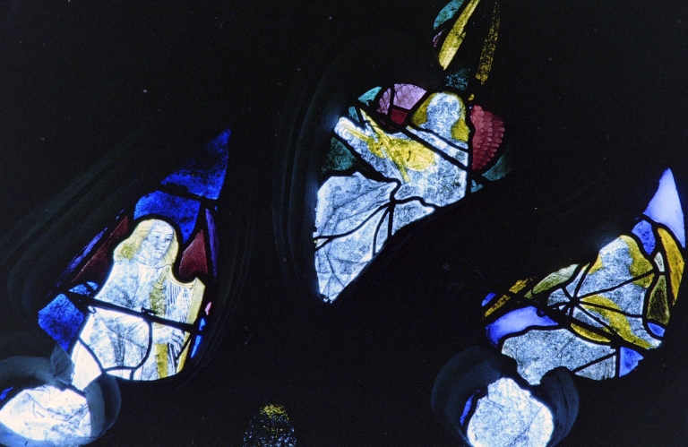 Verrière 1 : Vie de la Vierge, réseau et panneaux CII et DIII et EII.Immatriculation