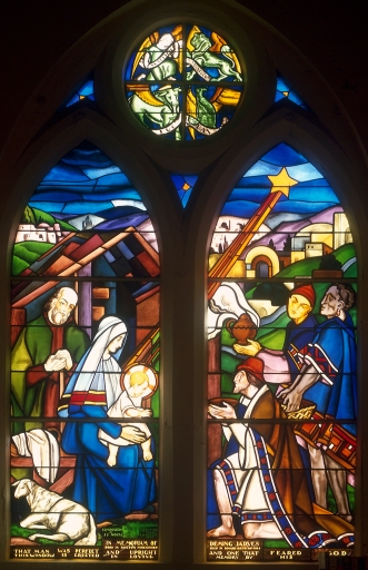 Verrière 4 'Les rois mages offrent leurs présents à Jésus après avoir été guidés vers lui par l'étoile', vue généraleImmatriculation