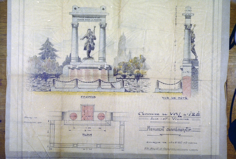 Plan de projet de monument aux Morts, par Mellet et Couasnon.Immatriculation