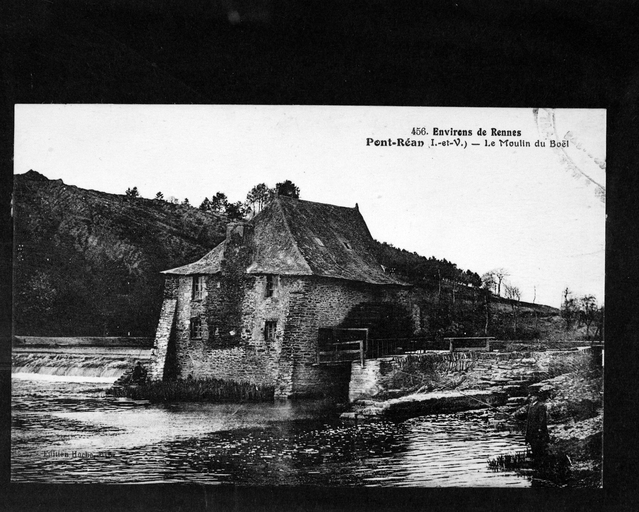 Carte postale ancienne - 456 - Environs de Rennes - Pont-Réan (I.-et-V.) - Le moulin du Boël.Immatriculation