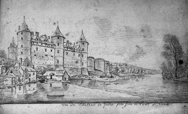 Vue du château de Joslin pris sur le pont Ste croix. Dessin, par Louis-François Cassas. 1776.