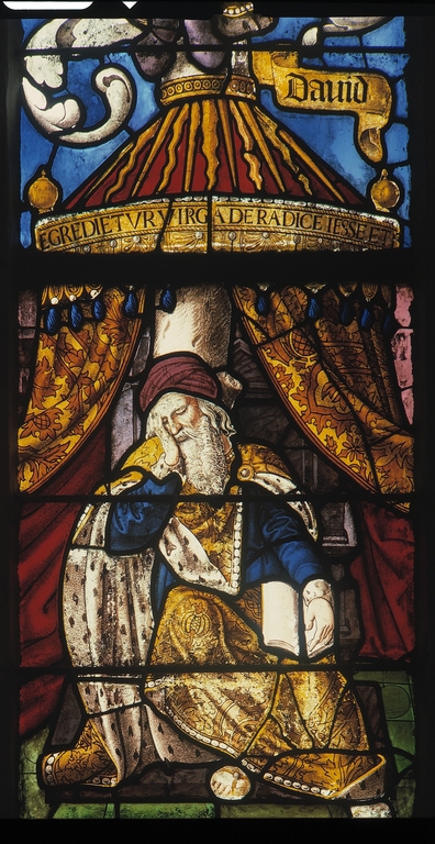 BEIGNON, église paroissiale Saint-Pierre, Verrière 1, panneaux b1-b2 Jessé endormi.Immatriculation